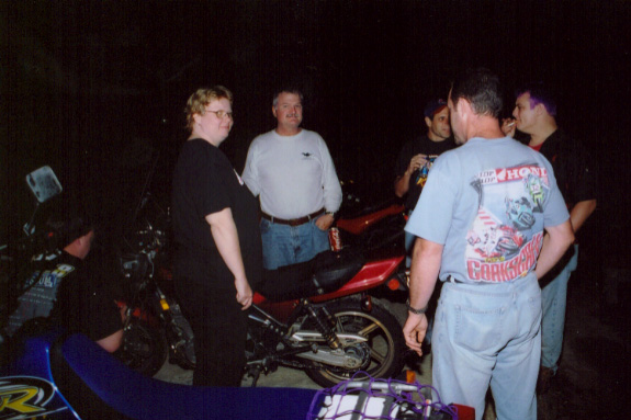 Shedding some light on the subject. L-R, Dave Arkle (crouching beside bike), Carolyn Thompson, Pat Vasquez, Chris Pope, Dan Parshall