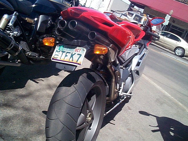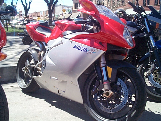 We arrived in Prescott, and were treated to lots of sportbikes parked around the town square. Here's a nice MV Agusta. Nice quad exhaust out the back. Sweet! Bikes as far as you could see. It was nice to see lots of sporty bikes, since Prescott has its share of Harley drones. We walked over to find the same group that we had seen in Yarnell. What's this? No R1?? Seems that Mr. R1 had overcooked a turn, and crossed the centerline. A car coming the opposite way clipped his rear, sending the bike skyward. Mr. R1 slid and tumbled, but not before offering a nice cushy place for his airborne bike to land, his shoulder! He was apparently rushed to the local hospital. The guys didn't know anything else, but were going to visit him there after lunch. They said that the cops told them to "tell your friends that we'll be patrolling this road. Anyone going over 30 will be written up." We shall see. I'll post as soon as I see Gestapo presence. Anyway, the three of us went into the Prescott Brewing Company, and enjoyed a glass of the finest microbrews around, and swapped stories of the day's events.