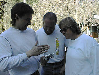 Karen Ferguson and her husband Chris Munson, consort with our own 'Uncle Milt' Obermann at the ryder's meeting. After the 'official' stuff was over, we all just enjoyed ourselves. |