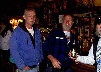 Jim Devlin and Jeff Gent with an as-yet unidentified maggot (pardon my poor mem- ory) at the ryder's meeting. A great time was had by all. |