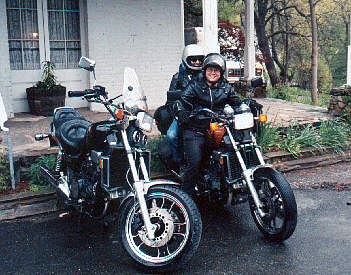 Ari and Erica Obermann, ready to head out for the ryde back to L.A. The bike is Uncle Milt's ST1100. |