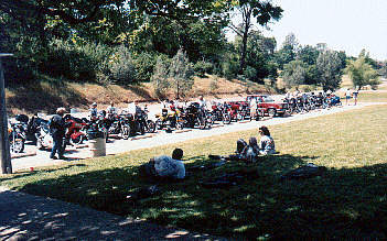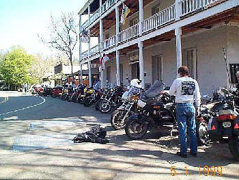 The bikes went the entire block in front of the magnificent, 140 year old hotel. They even put 'No Parking' signs out for us! |