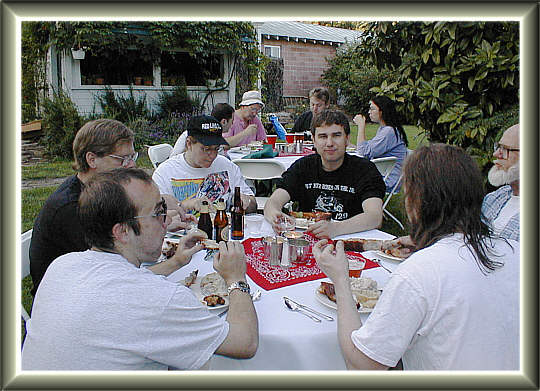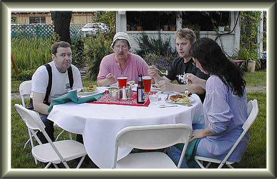 As we all settled in to the feast... The St. George supplied us with BBQ ribs and chicken with two wonderful salads and homemade brownies for dessert. Complete with no host bar for our convenience.