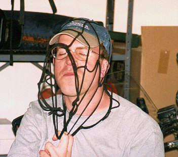 This here is Axel. He didn't want his piccie taken, which explains the net. I guess he didn't realize that there were lots of holes in his - ahem - 'cover'. Smart as a whip, this guy. Axel spent most of his seat time on Lynn's VFR (above), although he did manage to sneak a ryde on 'Stormy' - YWR's lovely VTR1000 - which he rudely stole from me.... |